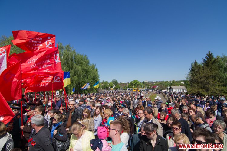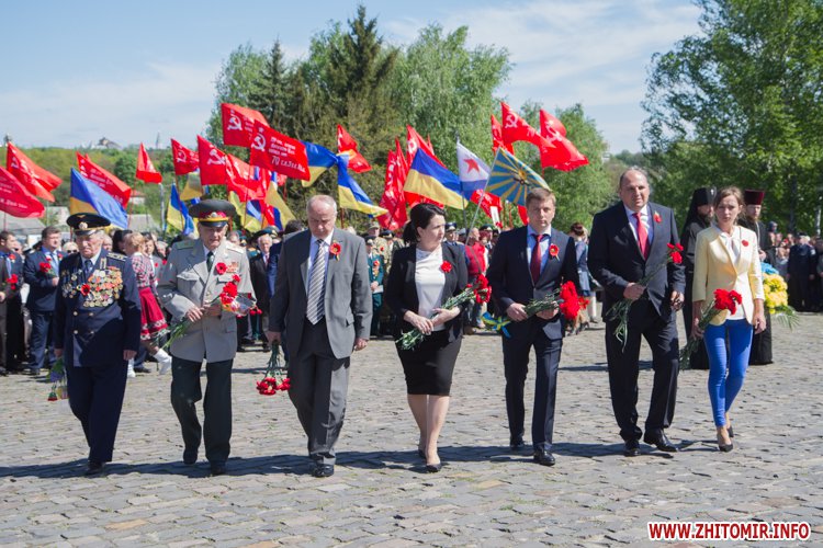 «В областном центре наиболее многочисленные мероприятия 9 мая происходили вблизи Монумента Славы, где собрались жители и гости областного центра, руководители Житомирщины и города, народные депутаты и представители общественных организаций и политических партий. В общем праздничные мероприятия прошли в 29 населенных пунктах области с участием почти 15000 жителей Житомирщины», - информируют правоохранители.