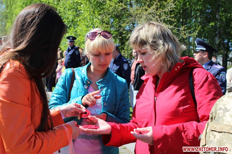 Житомиряни участь у такій ініціативі брали охоче та залюбки вішали маки собі на одяг. Голова Житомирської територіальної організації партії «Блок Петра Порошенка «Солідарність» Сергій Сухомлин вважає цей символ чудовим поєднанням минулого із сьогоденням.