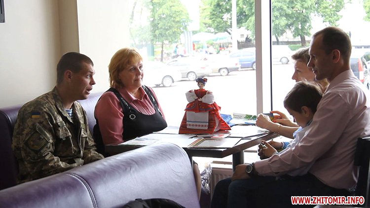 15 травня їх зустріч у Житомирі розпочинається з традиційного обміну сувенірами. Мама військового з 95-ї бригади і волонтерка з Канади цілий рік передавали бійцям на Схід найнеобхідніші речі від небайдужих людей. При першій нагоді зустрілися, щоб знову говорити про війну і довгоочікуваний мир.