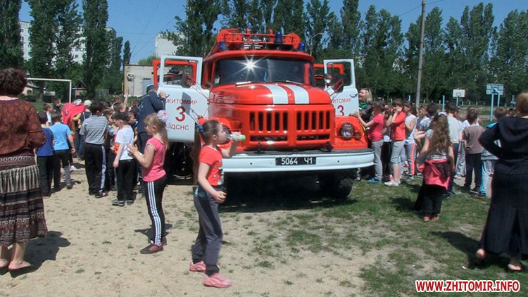 “Разом з громадським об'єднанням "Самопоміч" сьогодні підрозділом оперативно рятувальної служби міста Житомира було проведено в 24-й школі захід, в якому було роз'яснено дітям безпеку під час пожежі. Було проведено невелику екскурсію по пожежному автомобілю, зараз на даний час показують пожежні, як працює пожежна машина”, - каже капітан служби цивільного захисту Михайло Демченко.