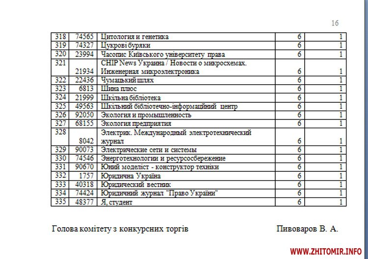 30 квітня Житомирська обласна бібліотека розмістила запит цінових пропозицій щодо журналів та періодичних видань Росії та України. У додатку містився перелік періодичних видань, в яких зацікавлена бібліотека.