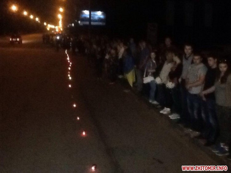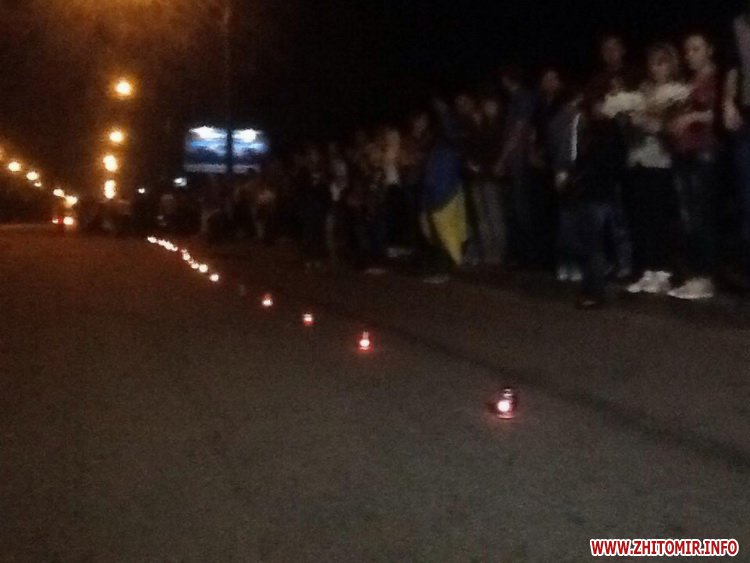 На в’їзді в Житомир близько двох сотень людей запалили лампадки вздовж дороги, зустрічаючи загиблого бійця 30-ї механізованої бригади Артема Абрамовича.