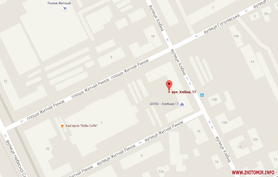 земельна ділянка несільськогосподарського призначення, площею 0,0169 га, для будівництва та обслуговування будівель торгівлі. Адреса об’єкта: м. Житомир, вул. Хлібна, 17.