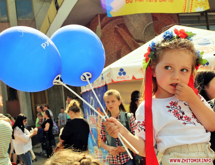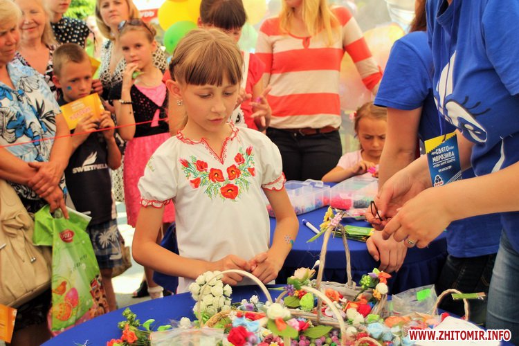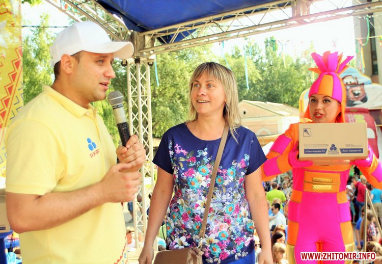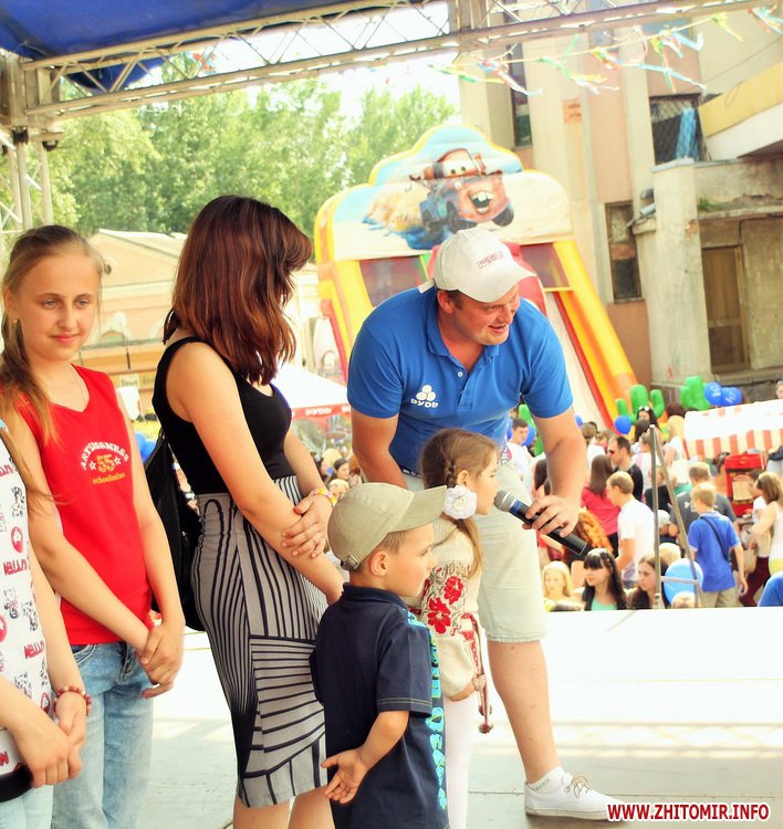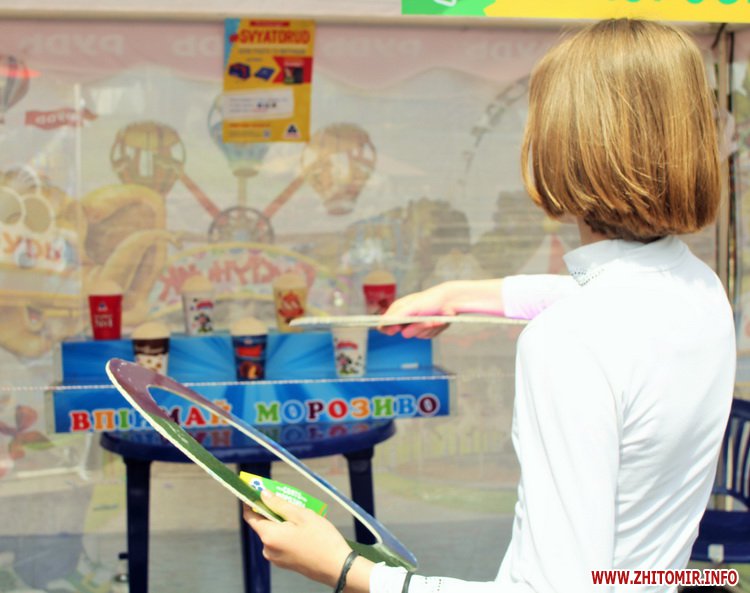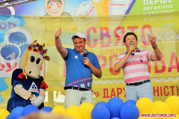 Маленькі житомиряни брали участь в атракціонах різного тематичного спрямування, об’їдалися смачним морозивом та виплескували енергію біля головної сцени, де проходили веселі конкурси і запальні танці з корівкою Маняшею та слоненям Пустунчиком.