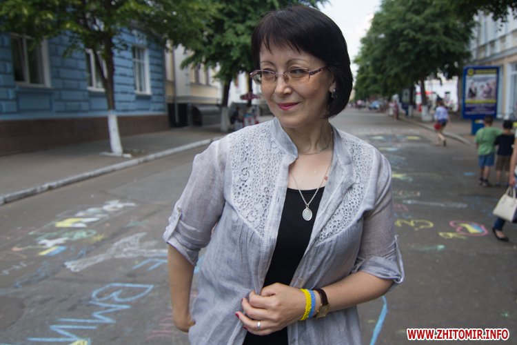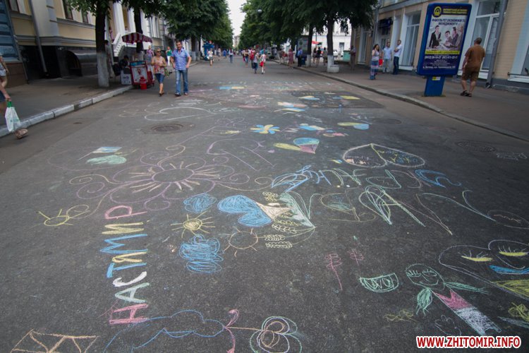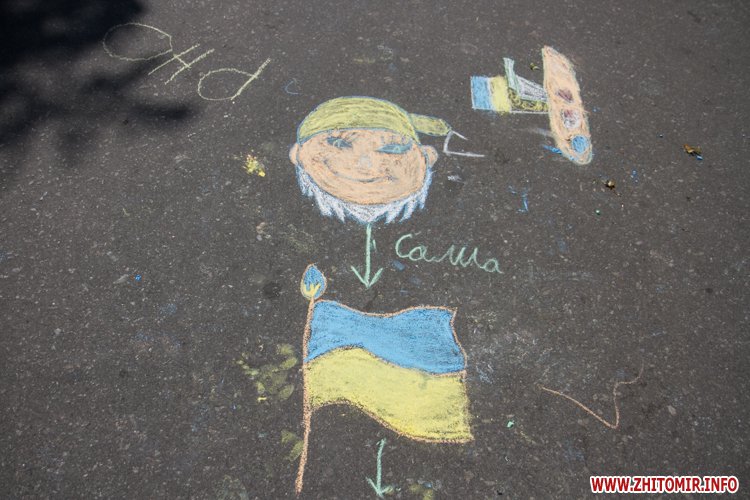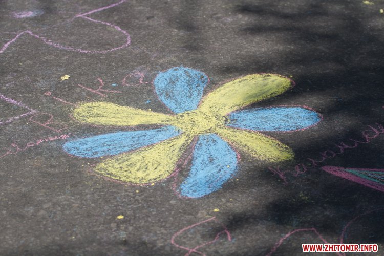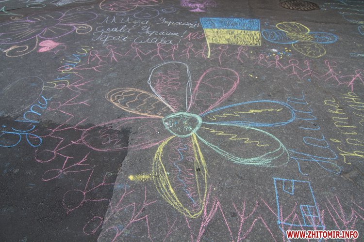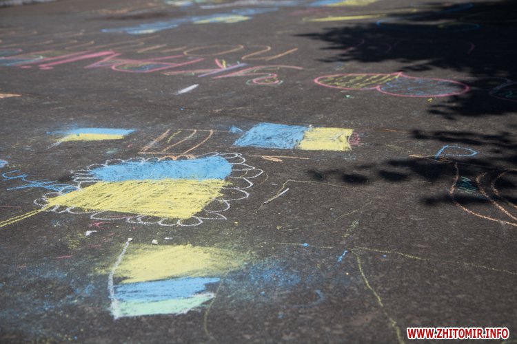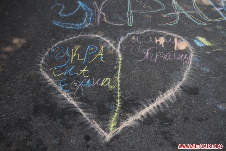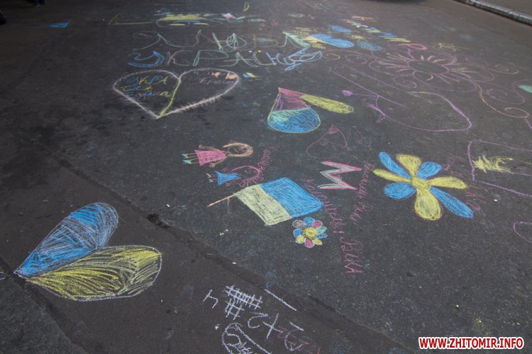 На розі вулиць Михайлівської та Лятошинського 3 червня проходила соціальна акція «Дитяче графіті «Україна єдина».
