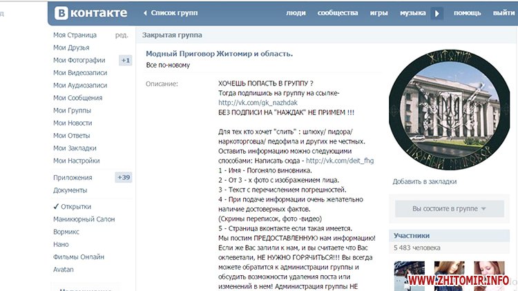 Хлопці, які вважають себе борцями за моральність і здоровий спосіб життя, взялися перевиховувати житомирську молодь. Методи у них своєрідні: кілька хлопців знімають відео так званих «виховних бесід» з тими, хто на їх думку веде аморальний спосіб життя. Ролики викладають у закриту групу «Модный приговор Житомир и область» соцсережі «Вконтакті».