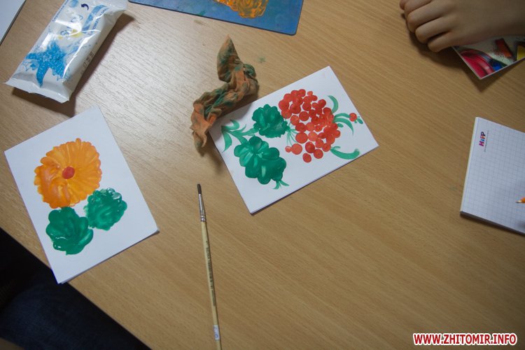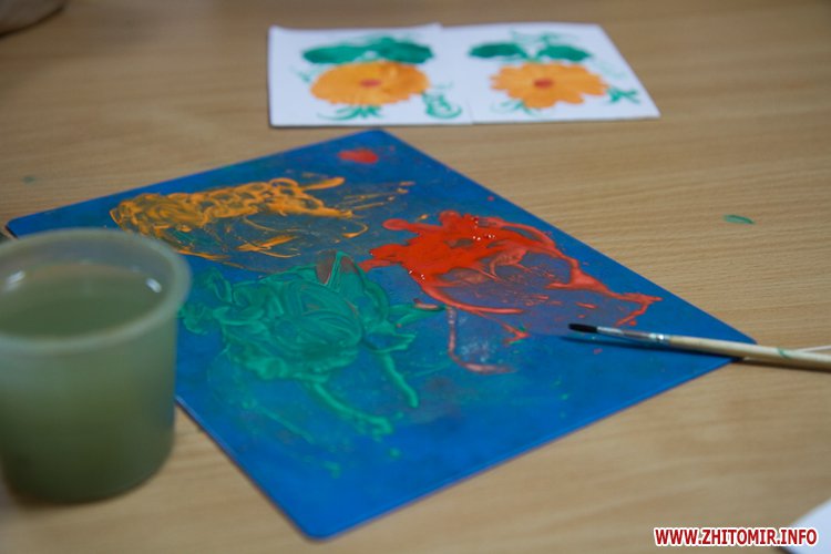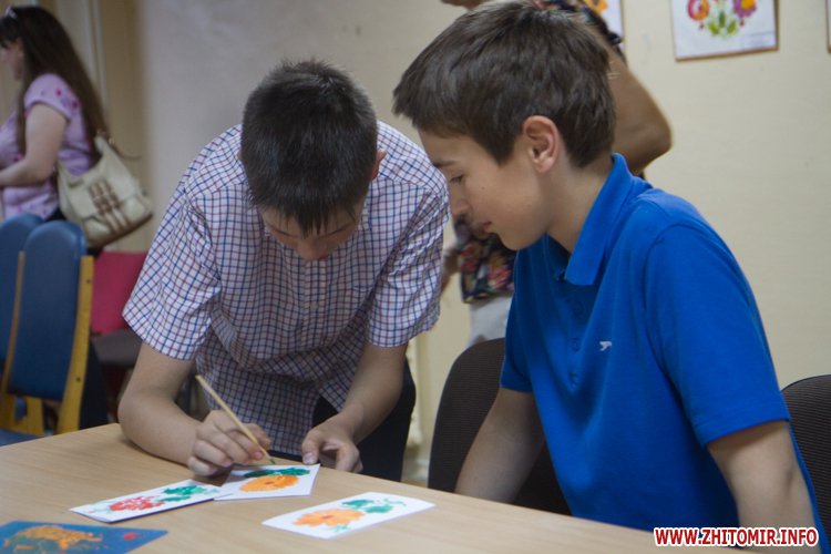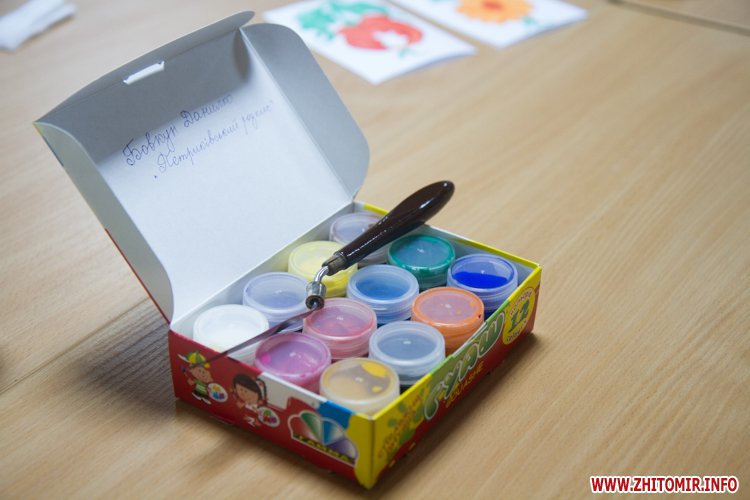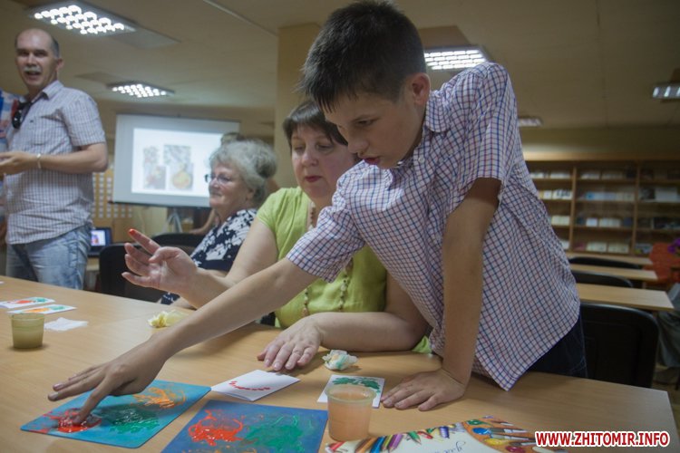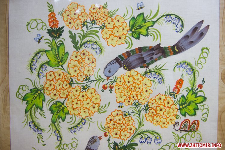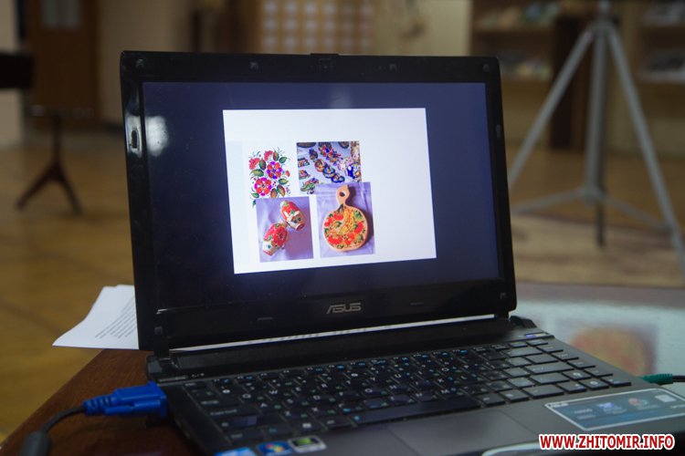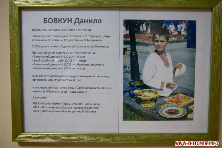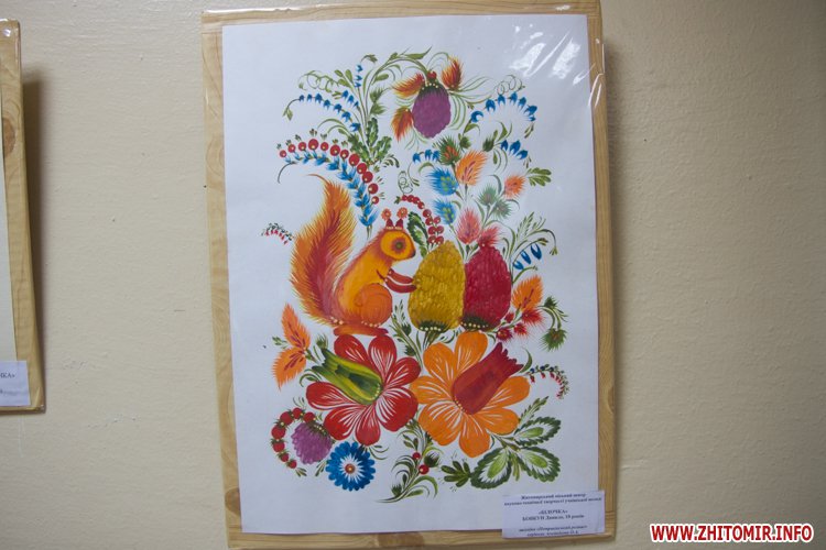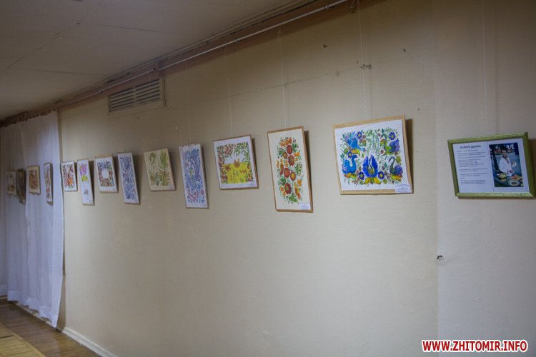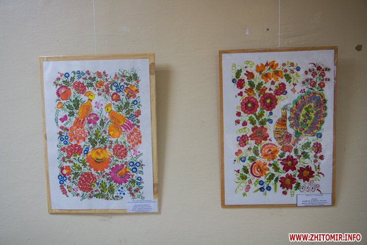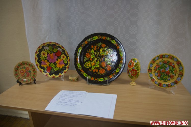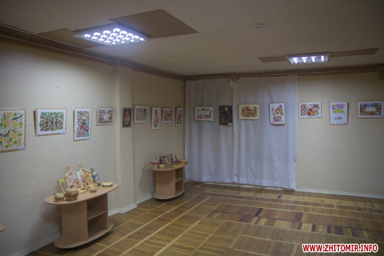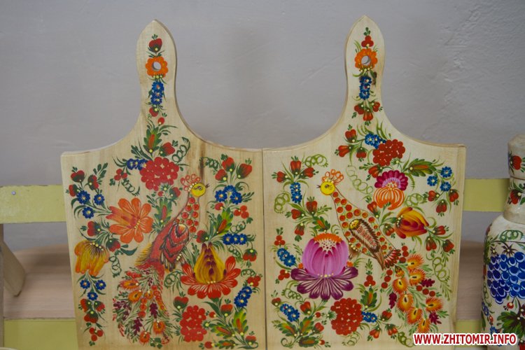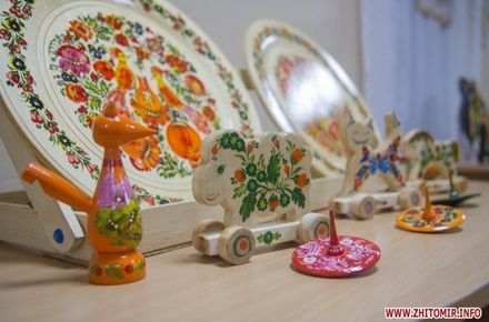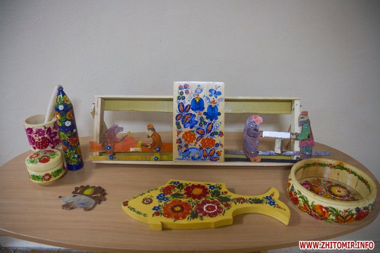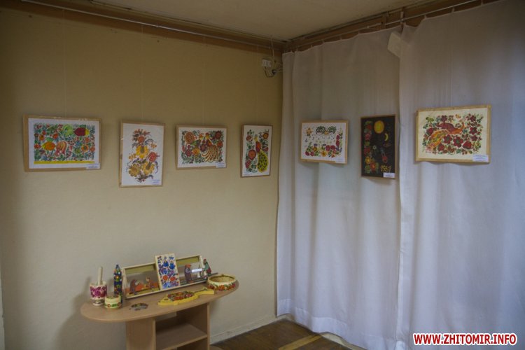 У Житомирі в приміщенні обласної універсальної наукової бібліотеки ім. Олега Ольжича відкрилася виставка картин та дерев’яних ужиткових речей у стилі Петриківського розпису.