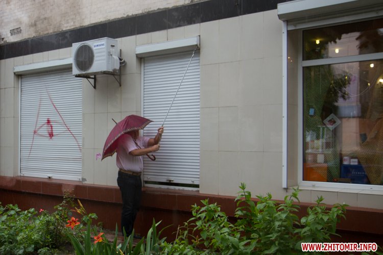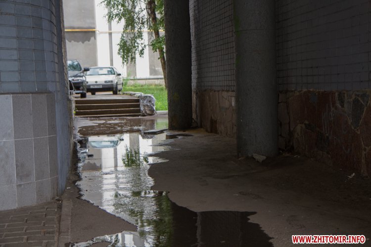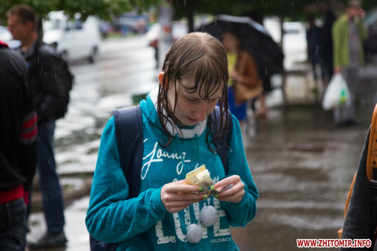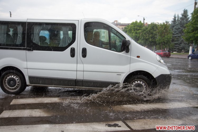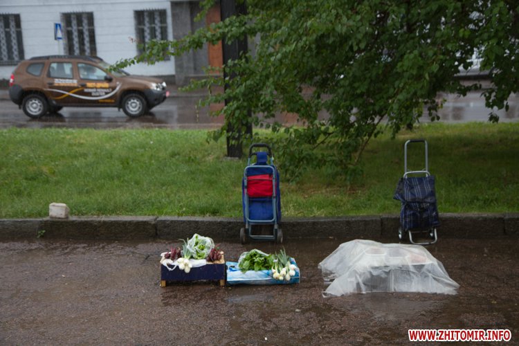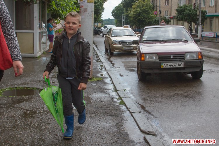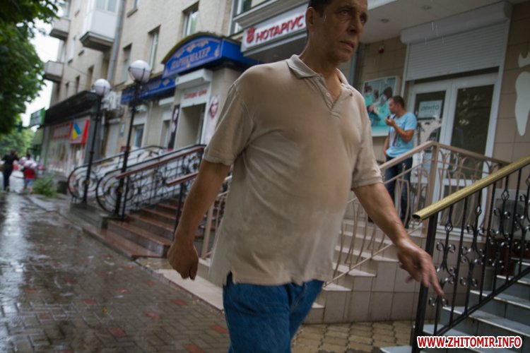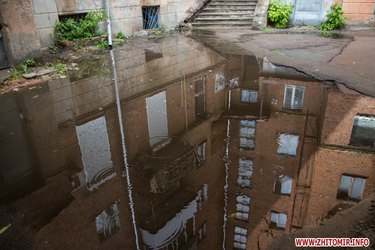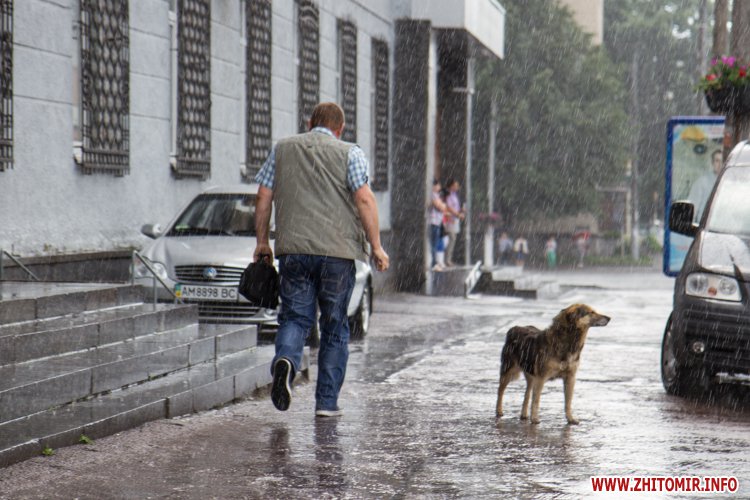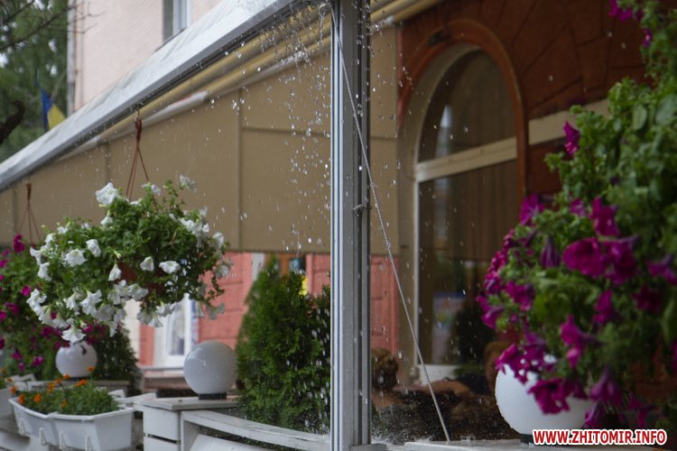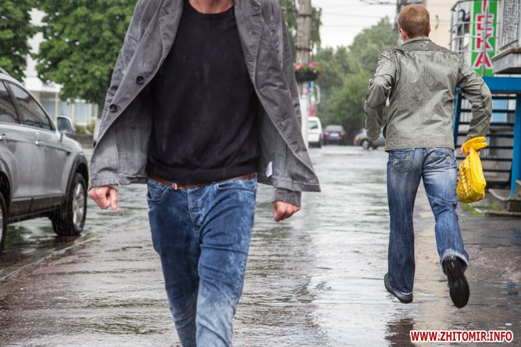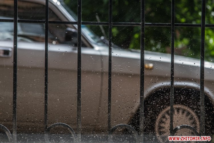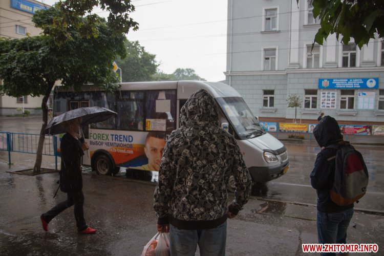 Вдень 22 червня Житомиром пронісся рясний дощ. Раптова злива багатьох застала зненацька, тож городянам, які не мали з собою парасольок, нічого не залишалось, як шукати накриття поблизу магазинів та у під’їздах житлових будинків.
