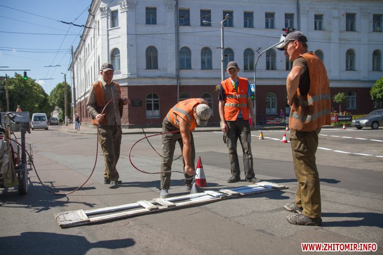 23 июня на центральных улицах Житомира начали наносить дорожную разметку.