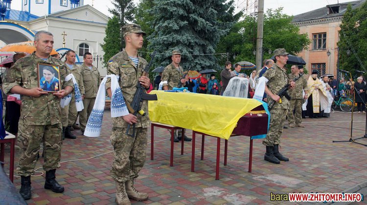 Декілька тисяч людей зібралися 1 липня на площі Волі у Баранівці, щоб провести в останню путь 31-річного військовослужбовця Віталія Гасюка, який загинув під час несення служби у зоні АТО.
