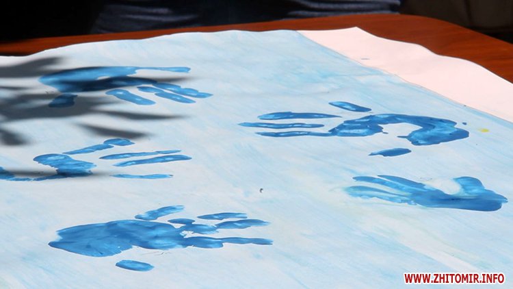 Кожен відбиток долоньки підпишуть, а згодом колективний малюнок перенесуть на тканину, аби передати бійцям на передову.
