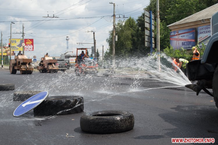 16 июля коммунальщики ремонтировали дорогу в районе житомирского автовокзала, из-за чего перекрыли улицу Киевскую. Не обошлось и без аварий.
