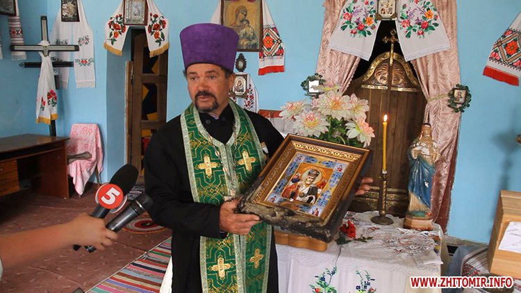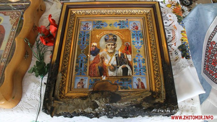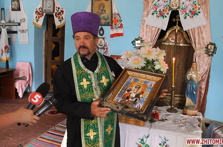 Обгорілу ікону отець Михайло привіз у храм села Романівка Попільнянського району, у якому служить.