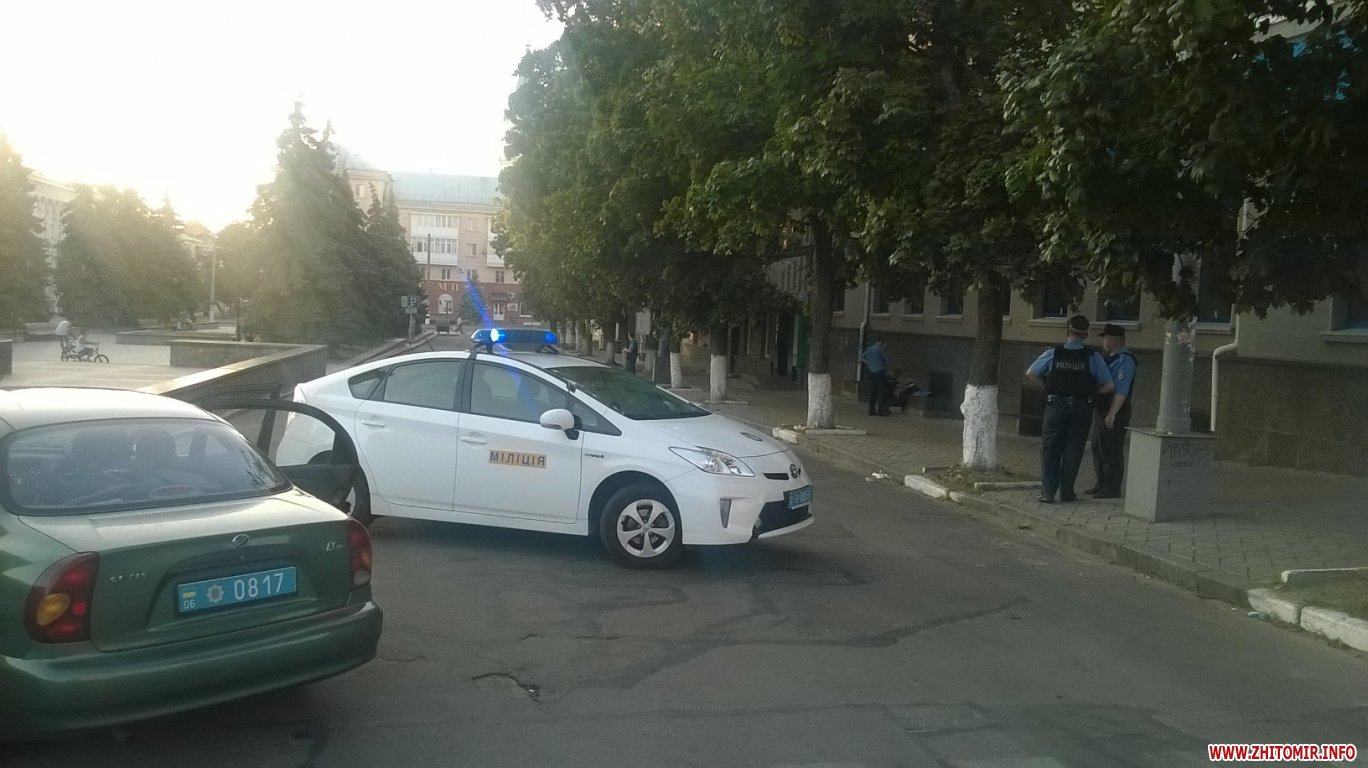 25 июля около 20 часов в Житомире, возле дома недалеко от фонтана на Соборной площади, милиция перекрыла движение транспорта из-за оставленного кем-то рюкзака.