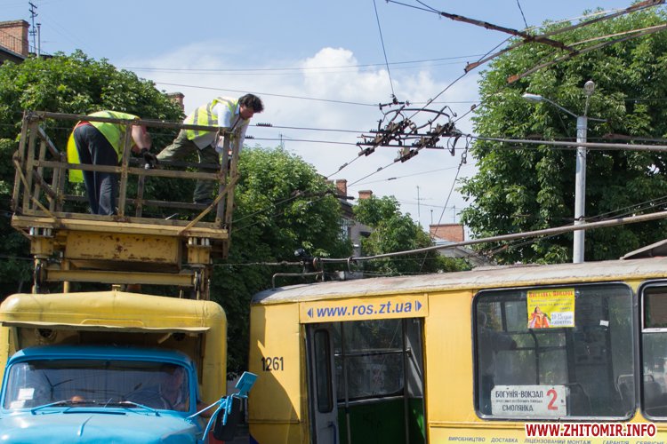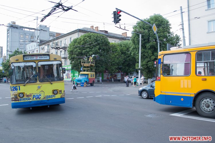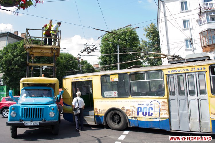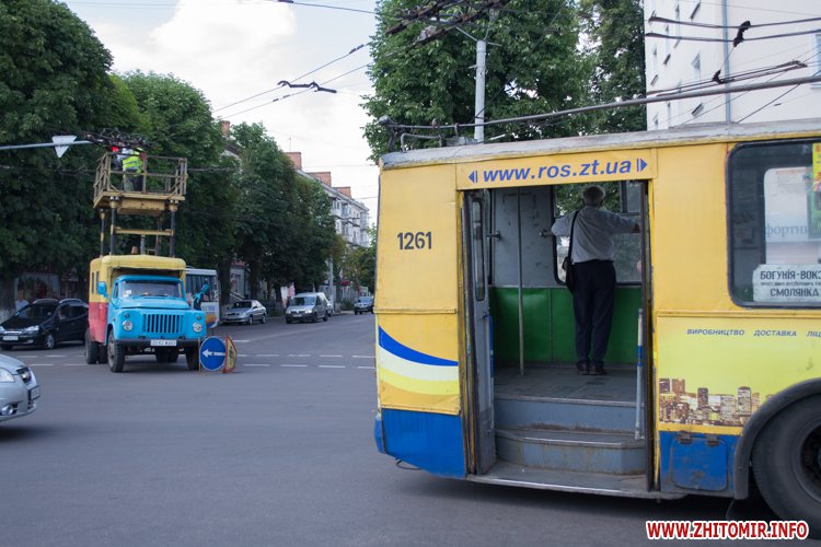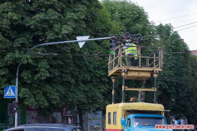 У Житомирі 6 серпня близько 14.00 на вул. Театральній обірвався електропровід, через що зупинилися тролейбуси.