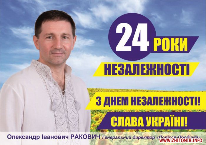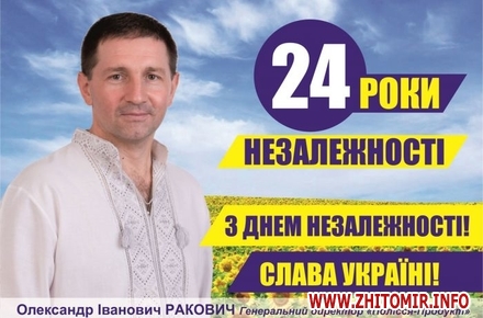 Шановні Житомиряни, полісяни, українці! Вітаю вас з Днем Незалежності України!
