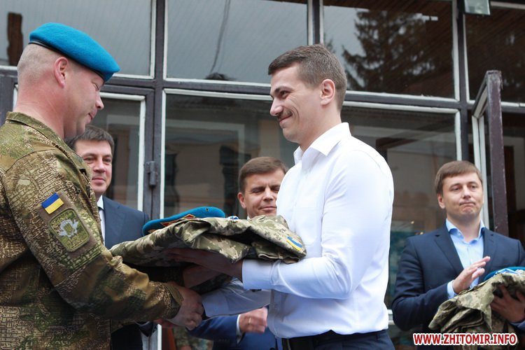 Під час заходу волонтерам та представникам державної влади вручили іменну військову форму з шевроном 95 ОАЕМБ з правом носіння, голубі берети та тільники. Серед волонтерів подарунок отримали: Іван Богдан, Юрій Іщенко, Федір Павлюк, Валентина Ейсмонт. Серед представників влади власниками польової, іменної форми стали: віце прем’єр міністр України, міністр регіонального розвитку будівництва та житлово-комунального господарства України Геннадій Зубко, народні депутати України Борислав Розенблат та Дмитро Андрієвський, голова обласної адміністрації Сергій Машковський, заступник голови обласної ради Руслан Годований, перший заступник міського голови Сергій Сухомлин, депутат міської ради Олександр Рабінович та заступник начальника Коростишівського лісгоспа Леонід Костюк.