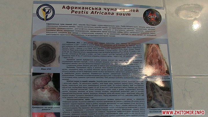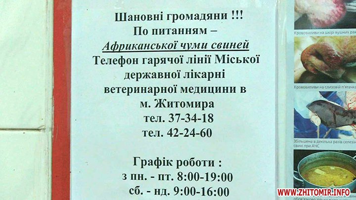 «Йде заборона торгівлі забою і заборона торгівлі сирим м’ясом, яке забивається в приватних підприємствах, не говорячи про підприємців, де буде просто знищуватись і забиратись свинина, будуть забиратись живі свині. Там, де захворіли ці свині, там, де є осередок цього захворювання, там в радіусі трьох кілометрів забиваються і спалюються, в тому числі і дикі тварини», - розповідає головний державний інспектор ветеринарної медицини м. Житомира Василь Кравченко.