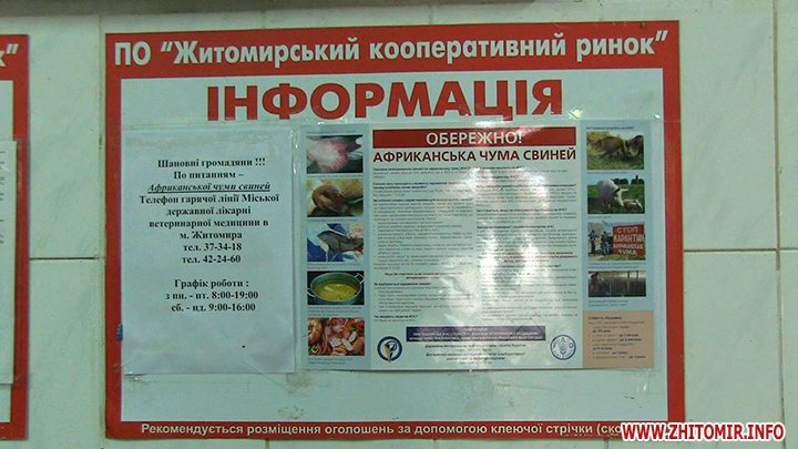 Попри те, що люди не хворіють на африканську чуму свиней, у ветеринарній службі закликають житомирян бути уважними та купувати м’ясо та м’ясні продукти лише у спеціально відведених для цього місцях.