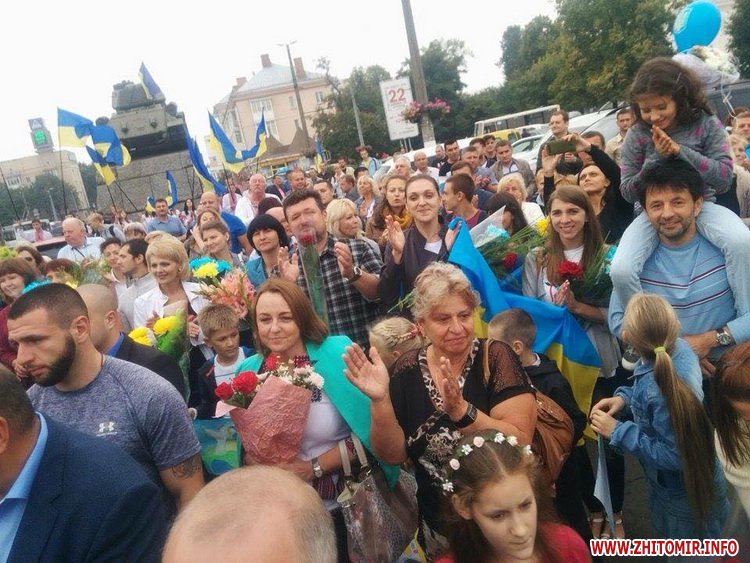 26 вересня о 9-й годині ранку на площі Перемоги зібралися житомиряни, аби зустріти демобілізованих бійців 90-го батальйону.