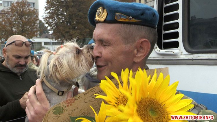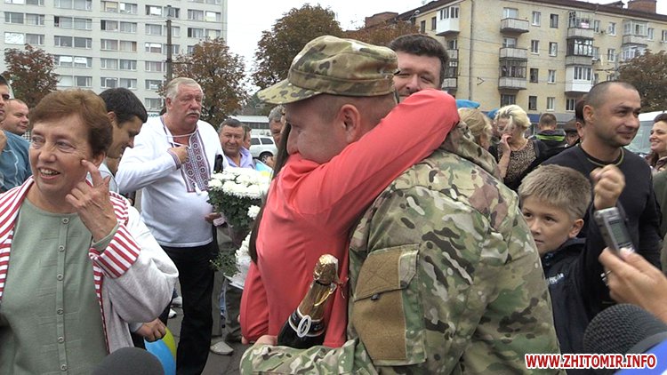 Аби зустріти Героїв, на майдан Перемоги прийшло кількасот житомирян, бойові побратими, а також колишній командир 90-го батальйону Олег Кузьміних.