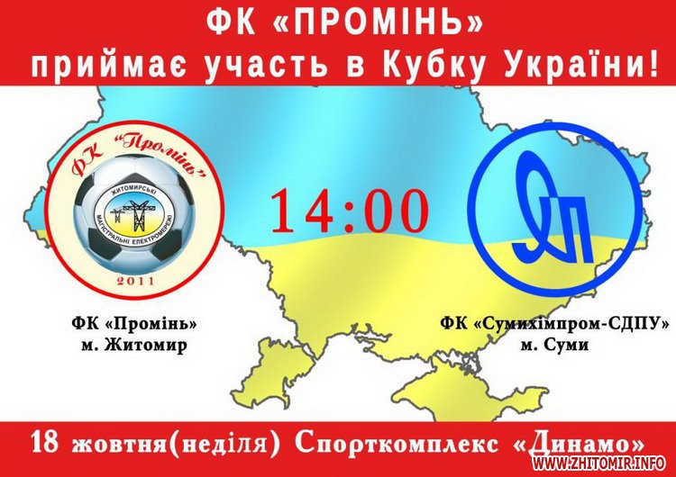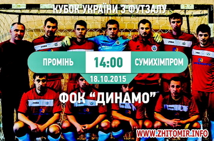 У неділю, 18 жовтня, віце-чемпіон Житомира по футзалу, ФК "Промінь" стартує в Кубку України з футзалу.