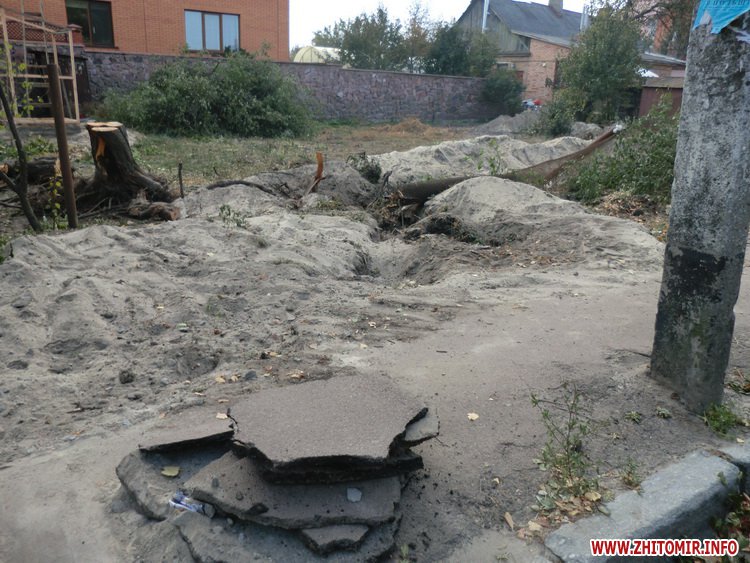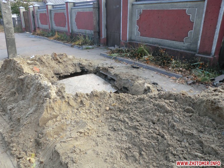 «У цю неділю, 18 жовтня, мені та ще кільком жителям приватних будинків перекопали під’їзд до подвір’я – сусіди підводили воду. Причому тротуар напроти їхнього двору не постраждав. Коли я вийшла запитати, на основі яких документів у вихідний день людям перекопують дорогу і чи є документ про те, коли це все буде приведено до нормального стану, сусіди винесли договір з КП «Управління автомобільних шляхів». На перший погляд, документ як документ, з мокрою печаткою, але укладений управлінням... з покійним господарем цього двору. У колонці зліва, де мають бути реквізити замовника, було пусто – які дані можуть бути у небіжчика?», - розповіла житомирянка.