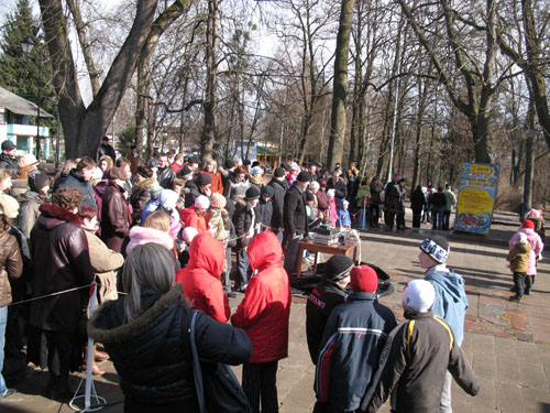 Несмотря на холодную погоду: шквальный ветер, снег с дождем и вообще неприятную атмосферу на улице многие из житомирян решили все-таки отпраздновать масленицу, как полагается: полакомиться варениками и блинами, ну и, естественно, сжечь чучело зимы. Кроме того, жители города имели возможность посмотреть праздничное представление и поучаствовать в различных конкурсах.