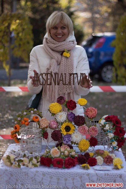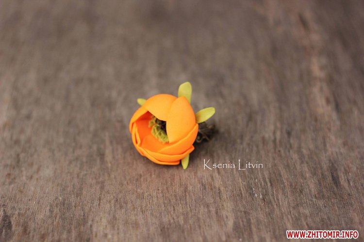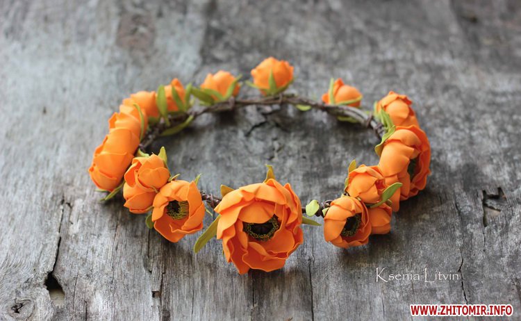 «Хенд-мейдом я вже займаюся 6 років, починала свою діяльність з майстер-класів в магазині фурнітури, а потім декупажем займалась і іграшки маленькі шила, а от буквально півтора роки тому я почула назву нового матеріалу і почала шукати що з нього роблять і коли побачила, які чудові квіти з нього можна зробити – я одразу купила майстер-клас, купила матеріал і приступила до роботи. Перша квітка в мене створювалась 5 годин. Наприклад віночок з яблуневого цвіту, такий як я представляла на конкурсі, там близько 3-4 годин. Буду продовжувати вдосконалюватись в створенні квітів, бо це завжди актуально», – зазначила Ксенія.