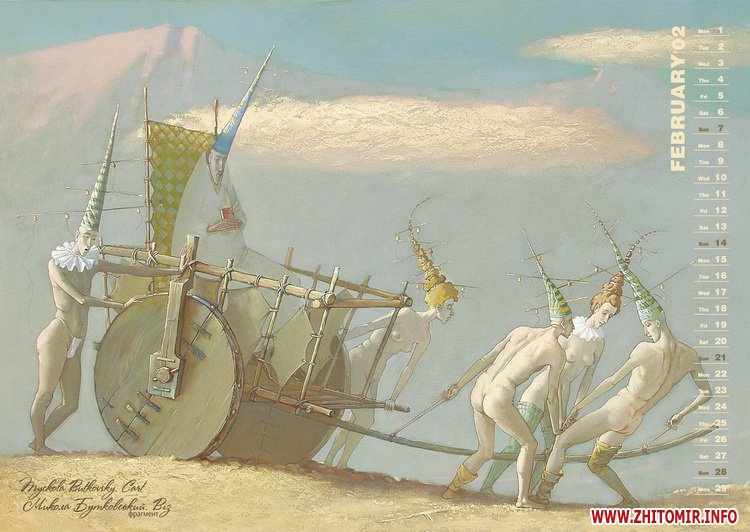 У календарі представлені роботи Миколи Бутковського, Юрія Камишного, Юрія Дубініна, Сергія Радіонова, Сергія Носка, Віктора Шкуринського, Ірини та Віталія Столярових, Ігора Донченка, Алли Карплюк та Юрія Супрунчука.