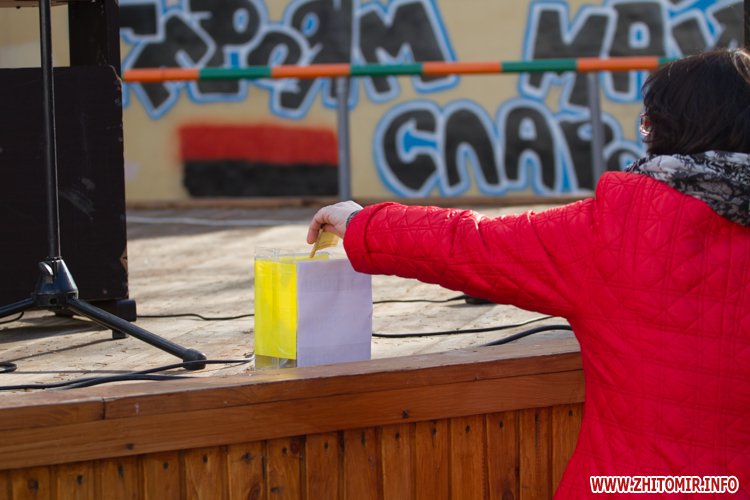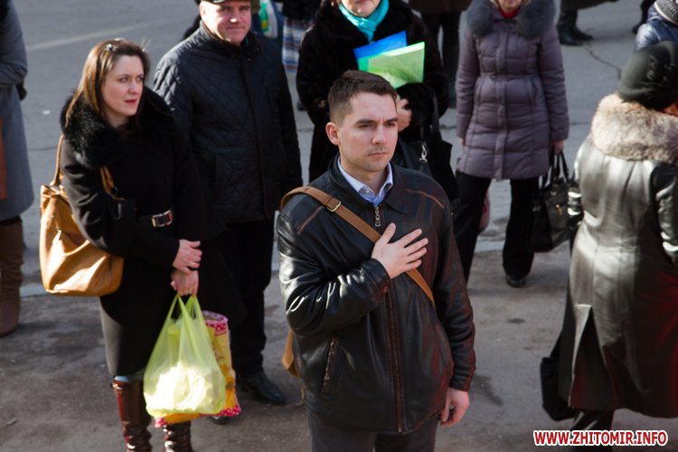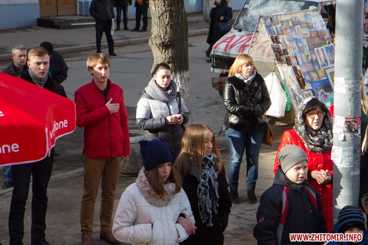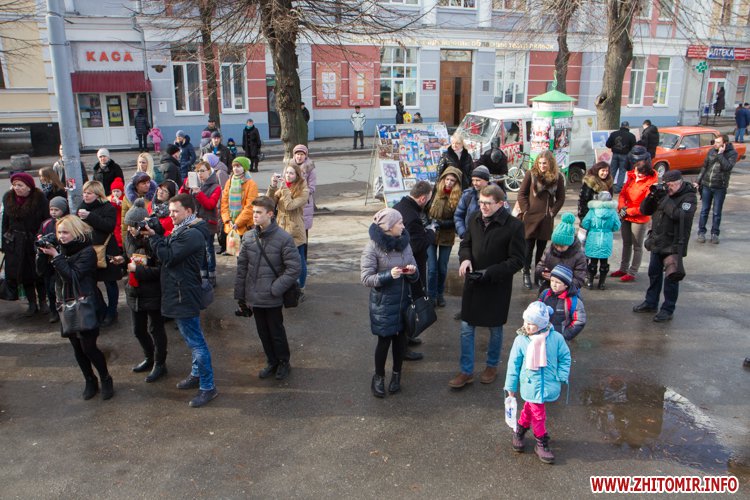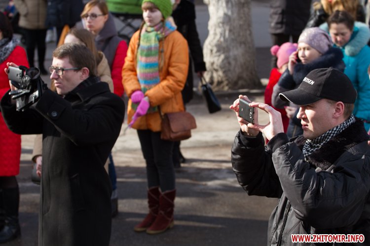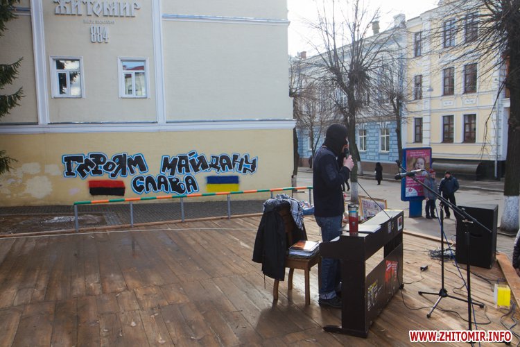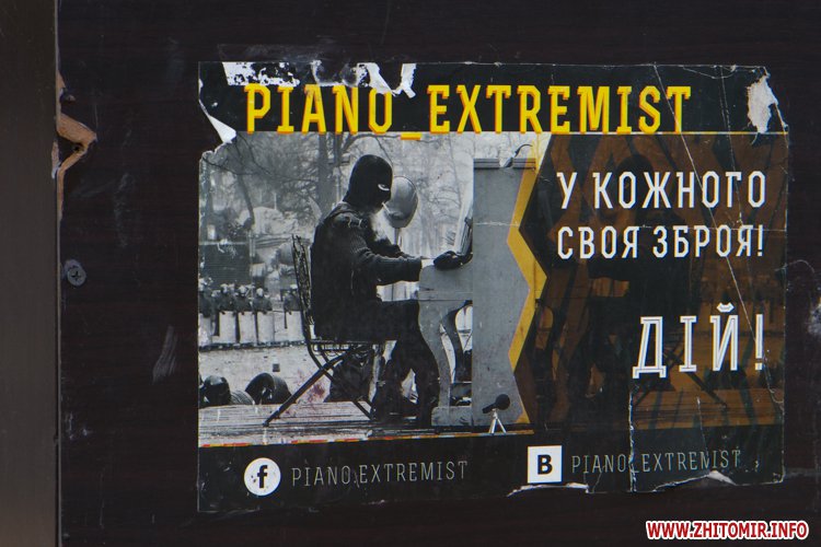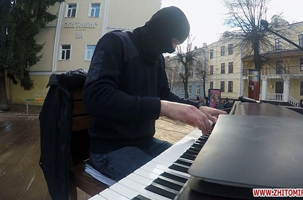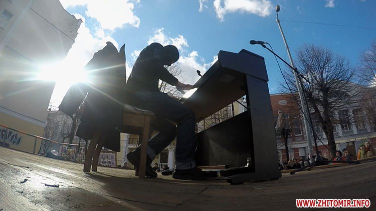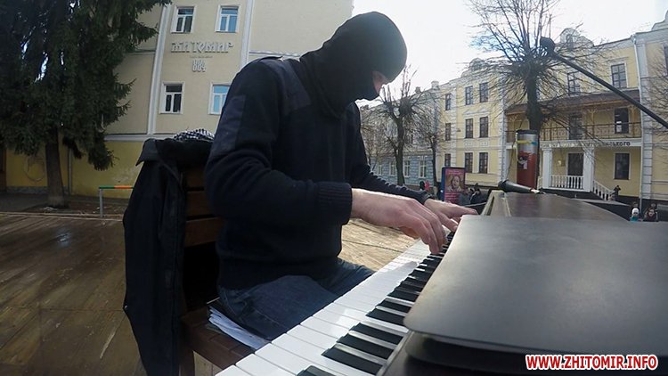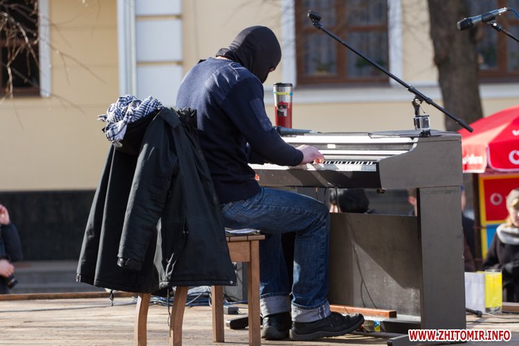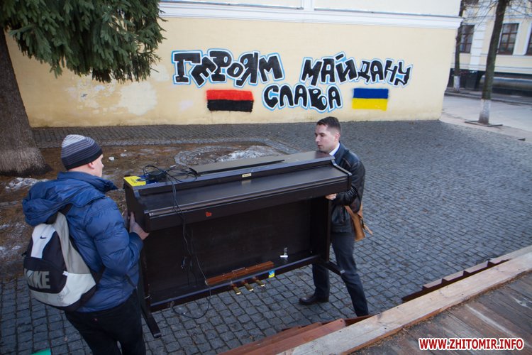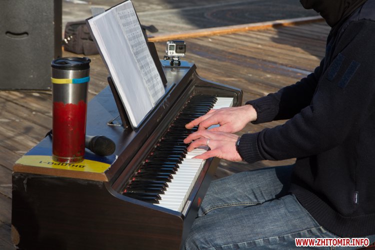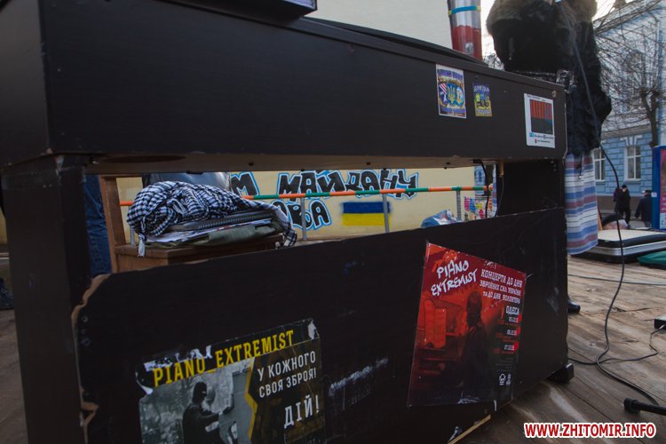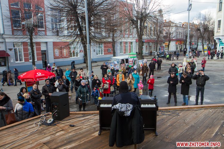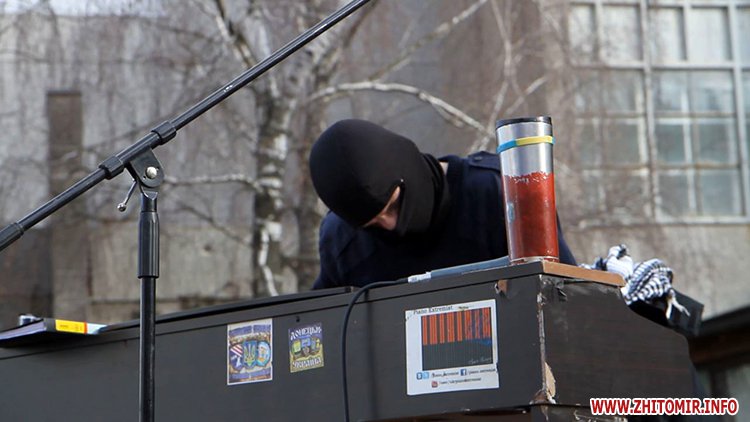 Для житомирян на Михайлівській 12 лютого зіграв піаніст, композитор та виконавець Piano Extremist, який принципово не показує своє обличчя. Він активний учасник Революції Гідності і став музичним символом Майдану.