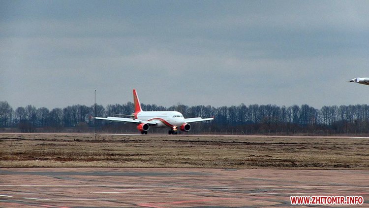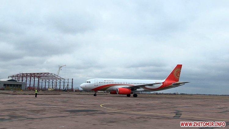 В обновленном аэропорту Житомира приземлился второй самолет. Это Airbus A320, который прибыл в Украину из Кыргызстана. В 12.10 самолет вылетел из Винницы и в 13.00 его приветствовали в аэропорту Житомира.