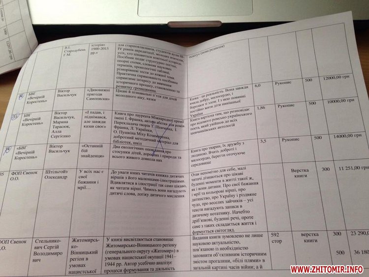 Попередньо ознайомившись із запропонованим переліком майбутніх книг, члени експертної ради відібрали 28 проектів, із текстами яких ознайомлюватимуться далі. Після опрацювання змістової частини та електронних версій цих видань буде сформовано остаточний перелік книжок, які будуть друкуватись в цьому році за кошти обласного бюджету.