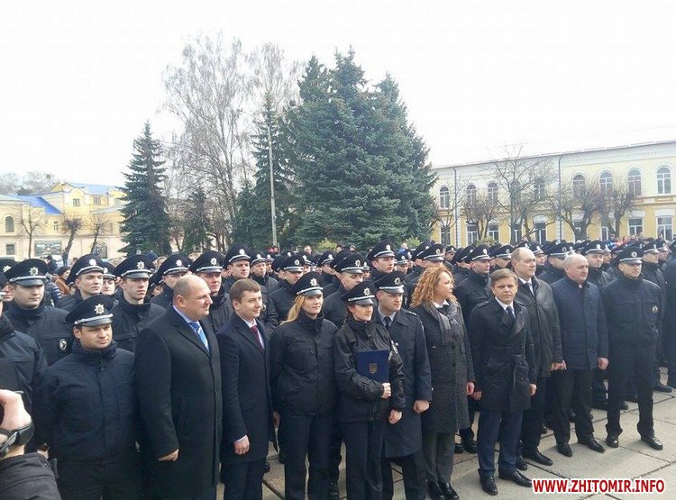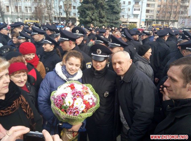 Сфотографировались с новыми «копами» народный депутат от Житомира Борислав Розенблат, губернатор Сергей Машковский, руководитель ГУ Нацполиции в Житомирской области Валерий Рудык, мэр Сергей Сухомлин и секретарь горсовета Наталия Чиж.