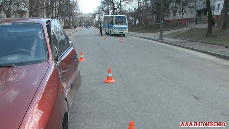 26 марта в Житомире автобус столкнулся с Daewoo Sens, женщину-водителя увезла «скорая»