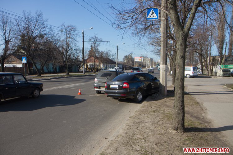 28 марта в Житомире в районе нефтебазы Skoda въехала в столб возле пешеходного перехода