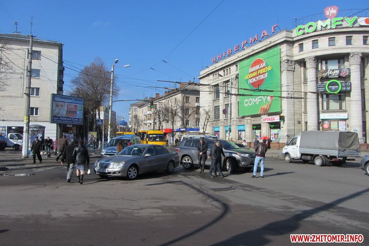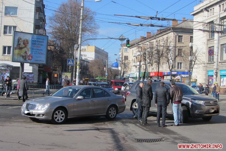 30 марта кто-то поспешил: в центре Житомира на перекрестке не разминулись Mercedes и Toyota