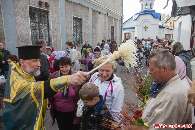 Цього дня у церквах та соборах проходять святкові богослужіння, а прихожани освячують вербові гілочки. У Житомирі вербові базарчики організували на вулиці Київській біля Свято-Михайлівського собору та біля Спасо-Преображенського собору, який знаходиться на майдані Перемоги. За букетик з вербових гілочок просять від 3 до 20 гривень.