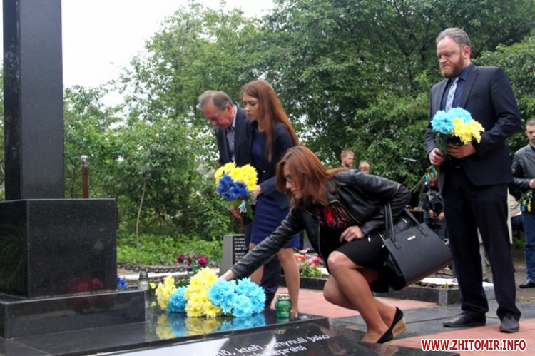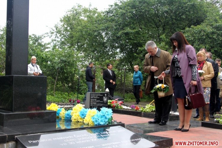 Квіти до стели з написом «Вічна пам'ять землякам – жерствам політичних репресій, розстріляних у 1930-1938 роках» поклали родичі загиблих, небайдужі житомиряни та представники влади. Пам’ять про репресованих вшанували хвилиною мовчання.