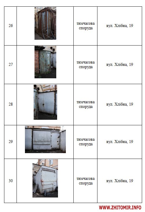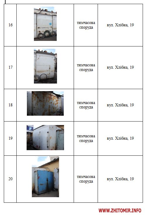 «З метою дотримання вимог законодавства та усунення порушень у сфері благоустрою і утримання об'єктів благоустрою м. Житомира в належному естетичному та санітарному стані, у зв'язку з відсутністю відомостей про наявність будь-якої дозвільної/погоджувальної документації на розміщення об'єктів, на підставі законів України «Про місцеве самоврядування в Україні» (п.7 ч.1 ст.30 ), «Про благоустрій населених пунктів», наказу Міністерства регіонального розвитку, будівництва та житлово-комунального господарства України від 21.10.2011 № 244 «Про затвердження Порядку розміщення тимчасових споруд для провадження підприємницької діяльності», рішення Житомирської міської ради від 29.03.2012 № 325 «Про затвердження Правил благоустрою, забезпечення чистоти, порядку і дотримання тиші у м. Житомирі», керуючись Порядком демонтажу тимчасових споруд для здійснення підприємницької діяльності, побутового, соціально-культурного чи іншого призначення та рекламних засобів, затвердженого рішенням виконавчого комітету Житомирської міської ради від 03.02.2016 № 63, виконавчий комітет міської ради вирішив затвердити перелік самовільно розміщених тимчасових споруд, обладнання на території міста Житомира, що підлягають демонтажу, згідно з додатком», - йдеться у проекті рішення.