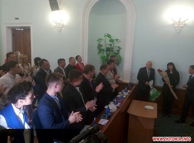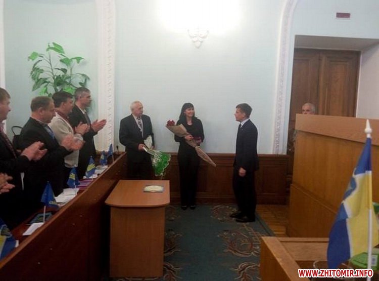Присутні у сесійній залі Житомирської міської ради стоячи вітали волонтера Юлію Толмачову, які вручили нагороди міської та обласної рад.