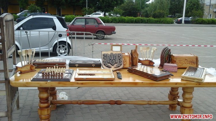 На універсальній виставці-продажу житомиряни можуть подивитись та придбати українські сувеніри, вишиванки, картини, прикраси, кераміку, вироби з дерева, ковані вироби, мед та медові напої, квіти та декоративні рослини.