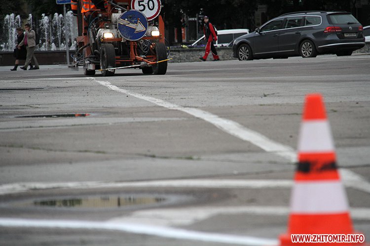 У Житомирі на майдані Соборному 20 травня почали оновлювати дорожню розмітку.