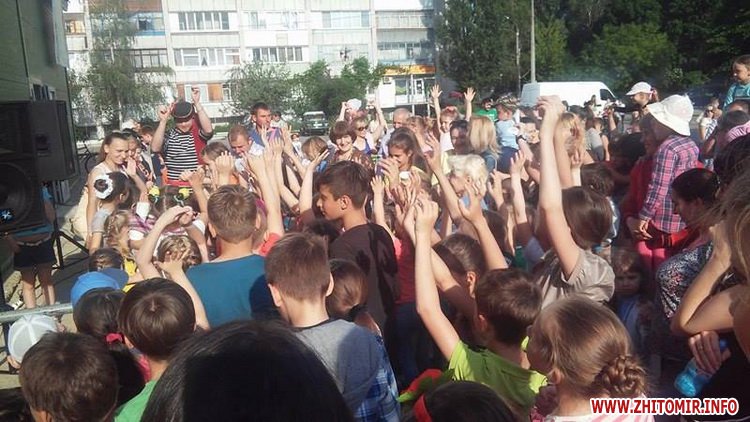 Показове шоу для дітвори організували і житомирські пожежники. Вони показали дітям як працює пожежне авто, з пожежного рукава поливали Фізкультурно-оздоровчий комплекс, біля якого і відбувалося свято.