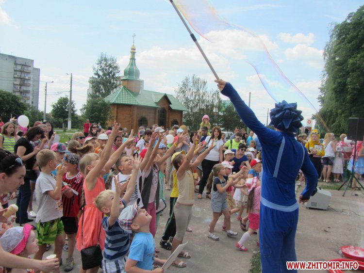 Маленьких учасників свята розважали веселі та невгамовні аніматори – Клоун, Сімка, Нулик, Міньон та Фея. Разом з казковими героями діти співали, танцювали та брали участь у різних конкурсах та розвагах. Кожен бажаючий абсолютно безкоштовно міг отримати кульку, солодку вату, морозиво, попити прохолодної води та пострибати на батуті. На святі проводилися майстер-класи з виготовлення кульок, тату та аквагриму, а також конкурс малюнків на асфальті, всі учасники якого отримали в подарунок подяки та розмальовки.