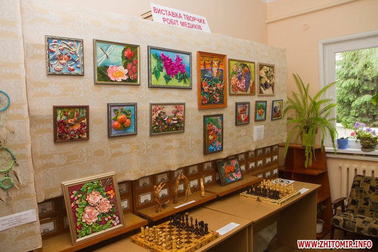 В Житомирской областной научной медицинской библиотеке на улице Пушкинской открылась выставка творческих работ медработников.