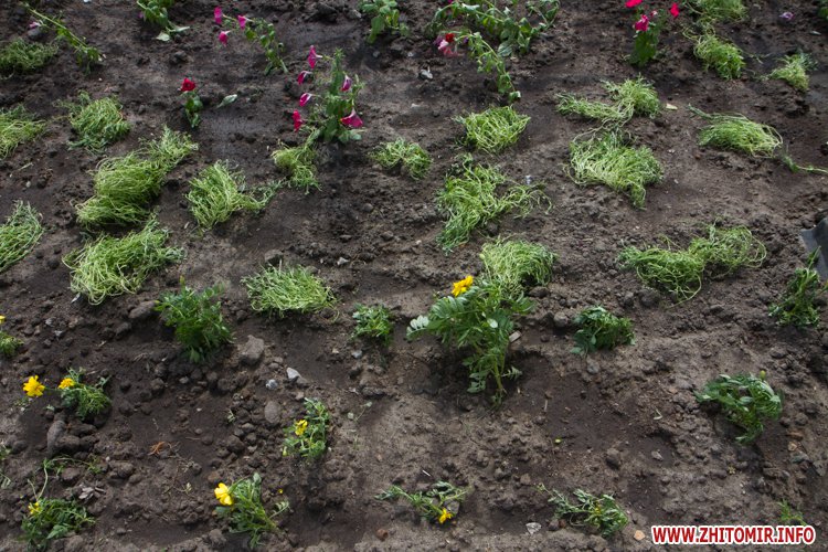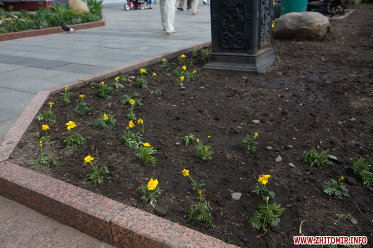 У Житомирі на вулиці Небесної сотні біля Житнього ринку на майже витоптаних клумбах 16 червня були висаджені квіти.