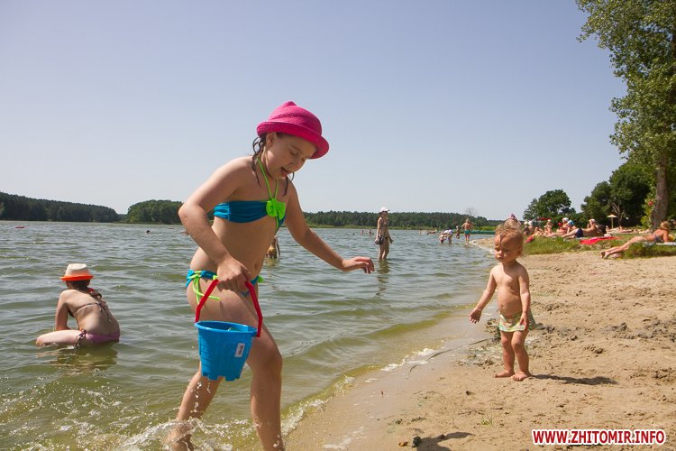 В гидропарке житомиряне на пляже наслаждаются теплом, загорают и купаются в реке.