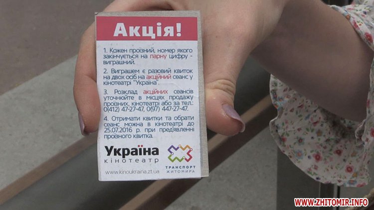 Як повідомляв Житомир.info, житомирянам за кожен другий проїзний запропонують квиток в кіно.