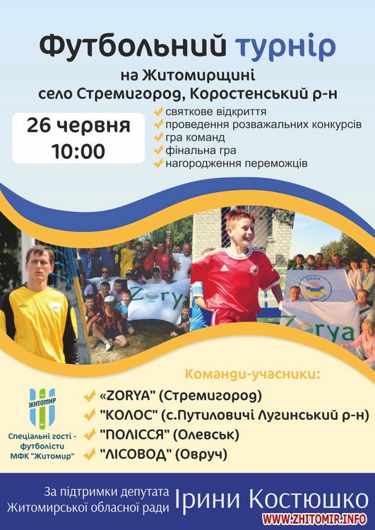 У неділю, 26 червня, відбудеться футбольний турнір між чотирма командами з Житомирської області.